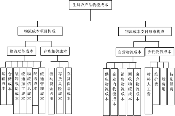 物流成本是指在企业运营过程中,商品从原材料到生产、加工和销售,以及废物回收等整个流程中所产生的各项费用。具体来讲,是在运输、储存、装卸等活动产生的成本总和。随着电子商务在我国消费市场发展的如火如荼,生鲜农产品也搭上了这趟便车,利用电子商务快捷即时的发展特点,生鲜农产品的销售渠道得以缩短,其销售成本也发生了细致的变化,连带物流成本也发生了变化。生鲜农产品物流成本主要包括两大部分,即初始投资成本和相应物流活动成本 [1]。由于产品本身的限制,保鲜期和食用期相对其它产品较短,对时间和温度的要求较高,消费者对生鲜农产品的品质要求也在不断提高,初始投资成本在生鲜农产品这一领域的主要表现为厂房、冷库、及其它具有贮藏保鲜功能的基础设施设备和固定资产的购置。其次就是伴随运输、储存、装卸搬运等职能,使生鲜农产品能够到达消费者手中而产生的物流成本。