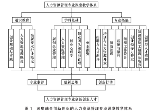 创新驱动国家发展战略对人才培养提出新要求,高校普遍将创新创业能力培养纳入人才培养计划。但创新创业教育与专业教育的定位不明确,创业能力、创新意识与专业素养的关系并不清晰,导致创新创业教育的课程设计缺少专业特色。创新创业教育对专业素养的支撑力度差,人力资源管理专业学生在岗创新、在岗创业甚至离职创业的意识和能力普遍缺失。